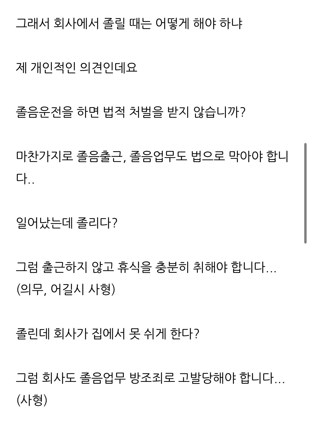모 분 블로그 짤 보다가 여담이지만 30시간동안 못 잔 전공의가 얼마나 정신나간 판단을 내리는지 직접 겪어본입장에서 이제도 크게 지지함 어떤 졸음업무는 과실치사로도 이어진다..,..